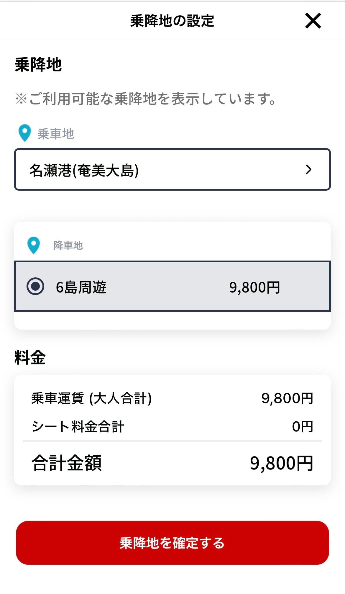 - 〔一時販売停止のお知らせ〕2025年5月1日11:00からJAL MaaSでのチケット販売を一時停止しております。乗船券のご購入は、公式HP等のその他販売サイトをご確認ください。
