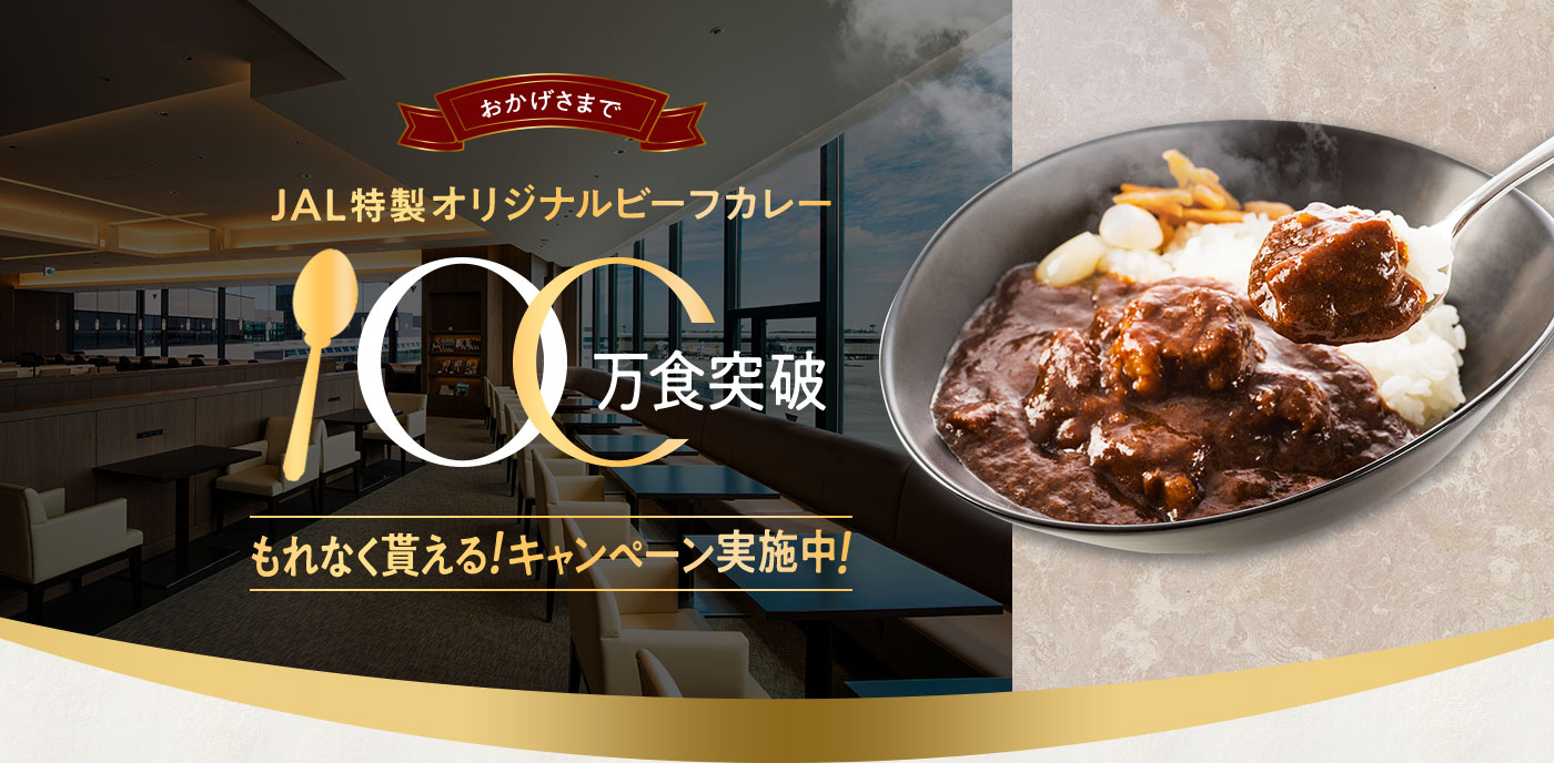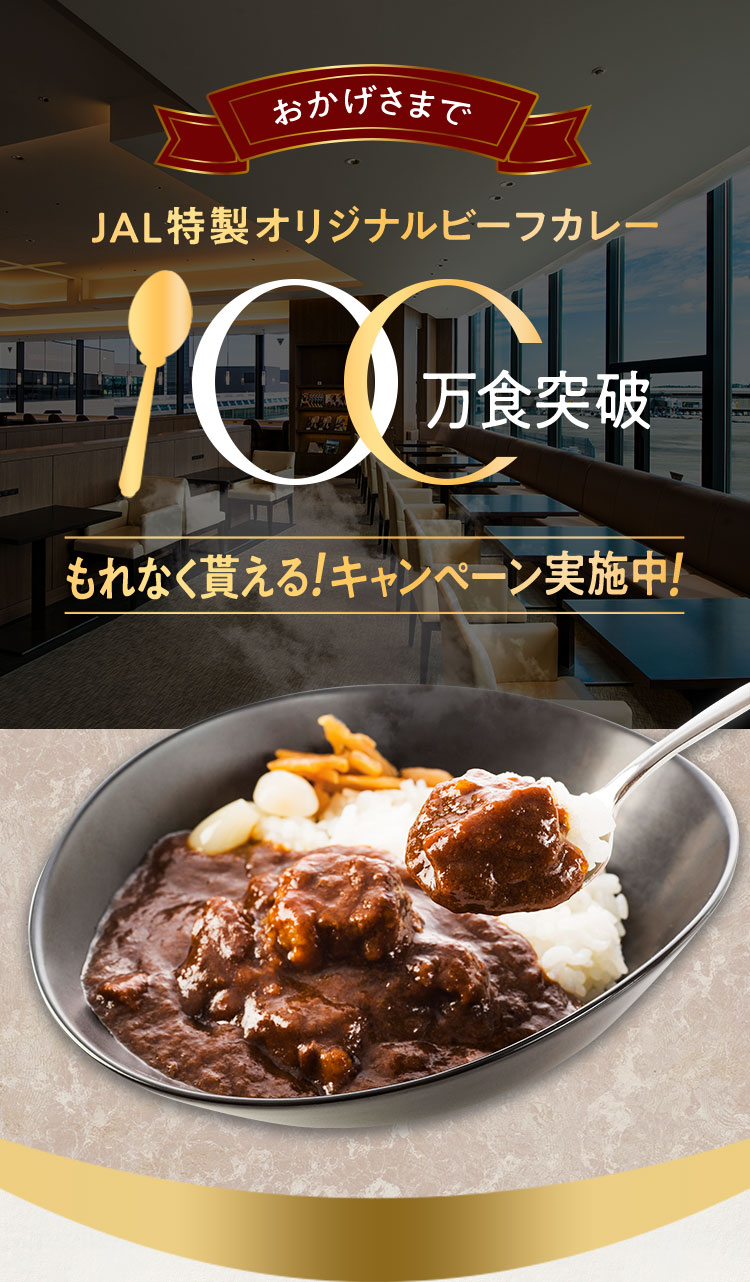 おかげさまで JAL特製オリジナルビーフカレー 100万食突破 もれなく貰える!キャンペーン実施中!