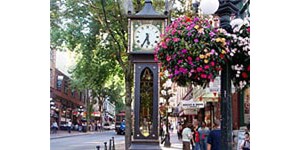 バンクーバー発祥の地。石畳の道路やアンティークな雰囲気の街灯が、当時の様子を偲ばせます。カフェ、アンティークショップ、ギャラリーなどが立ち並び、蒸気パイプのホイッスルで時を知らせる蒸気時計は、写真撮影の人気スポットです。周囲にはお土産ショップも多いので、カナダ土産はここで購入しましょう。