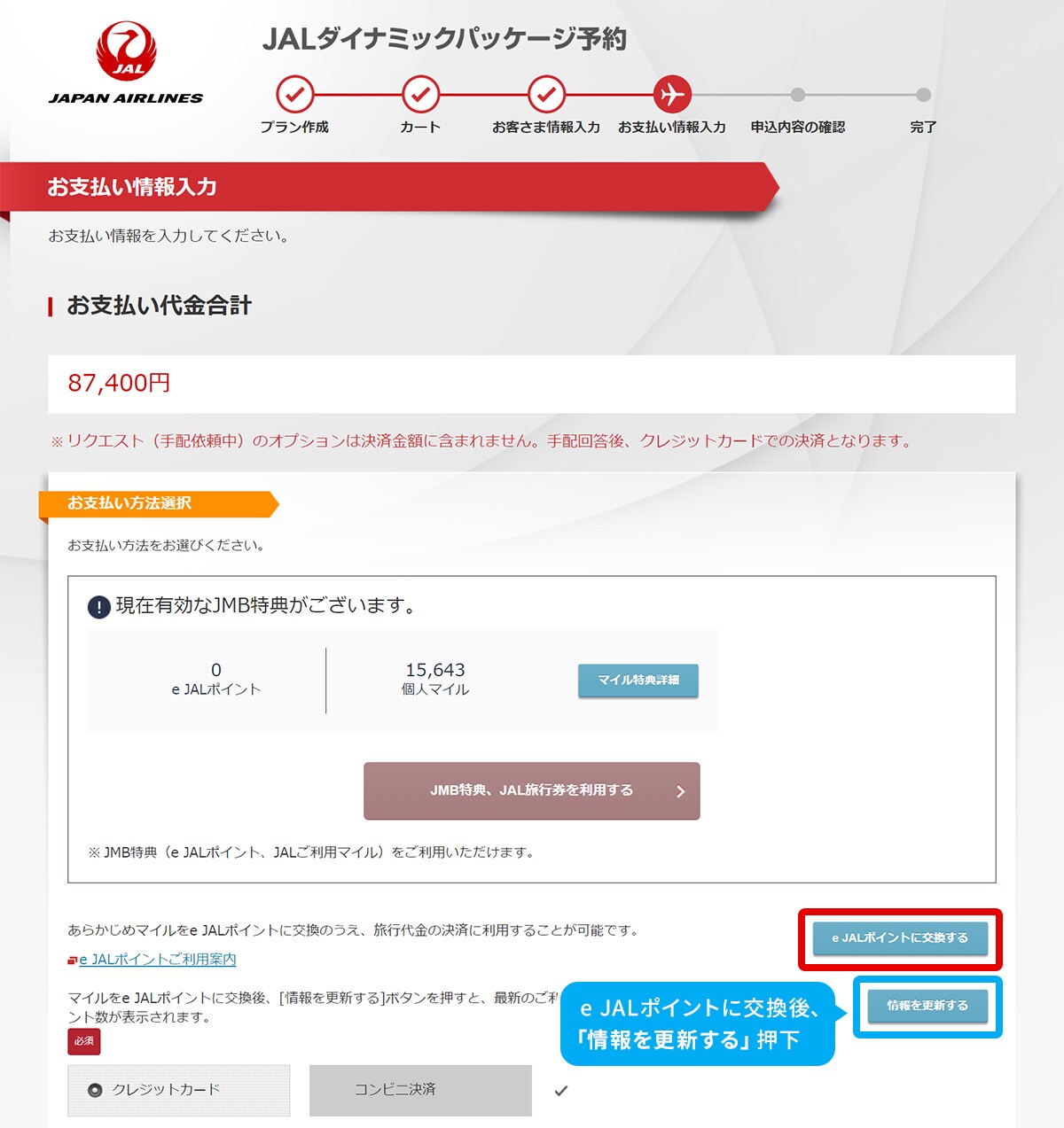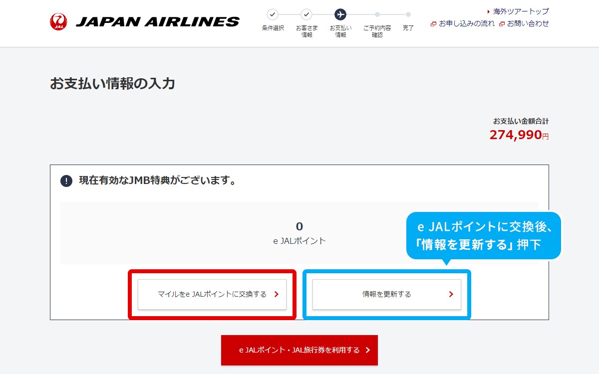 残金お支払い時までの数か月でマイルをためて、e JALポイントに交換し、旅行代金に活用しましょう!