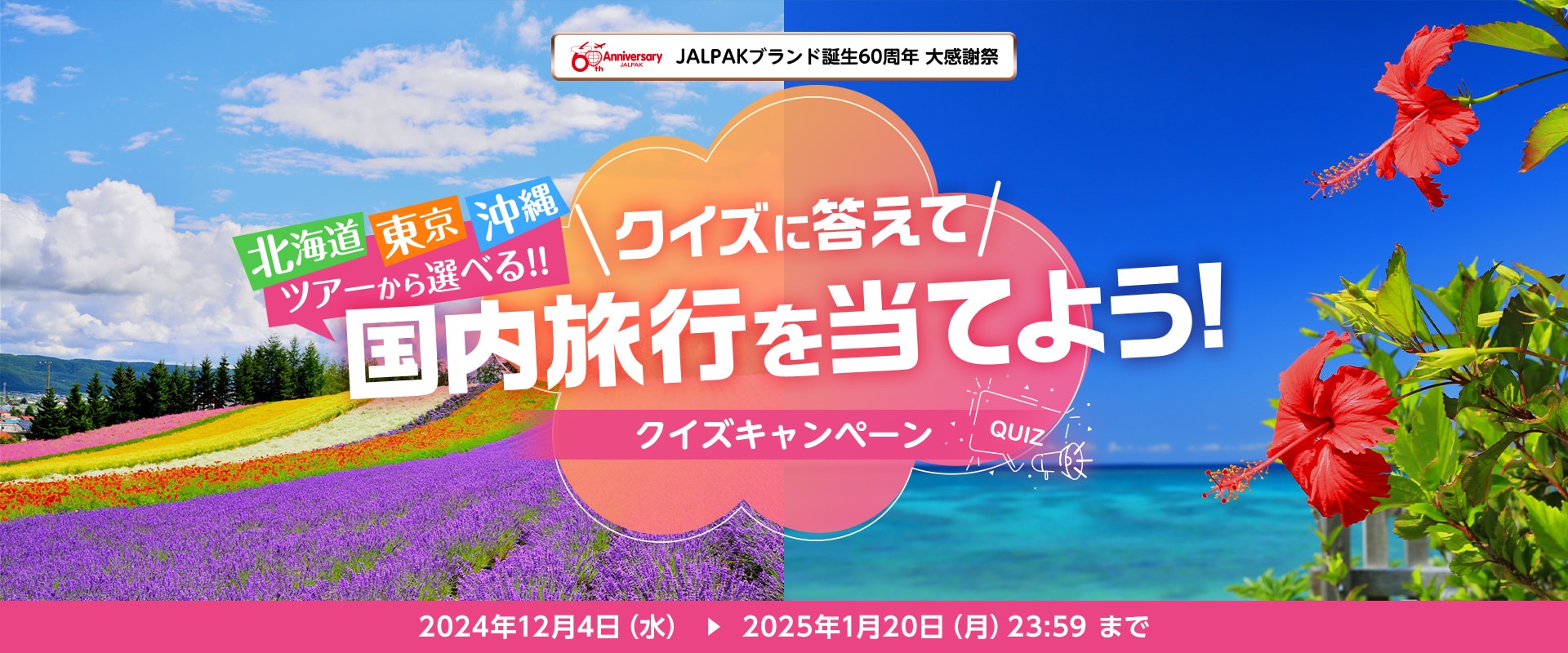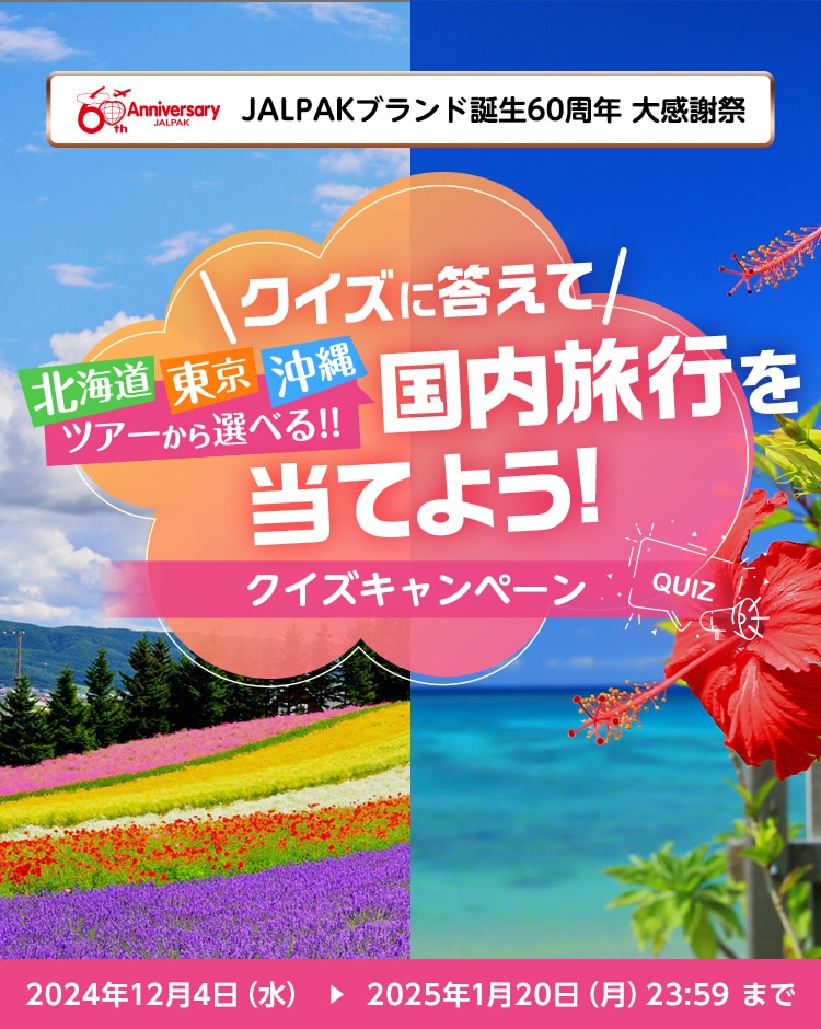 クイズに全問正解された方の中から抽選で、合計3組6名様にJAL国内ダイナミックパッケージをプレゼント!