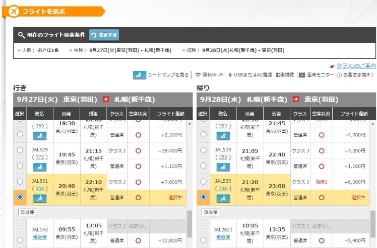 国内JALダイナミックパッケージでご利用便選択時の差額表示をアイコン表示から金額表示に変更いたしました。