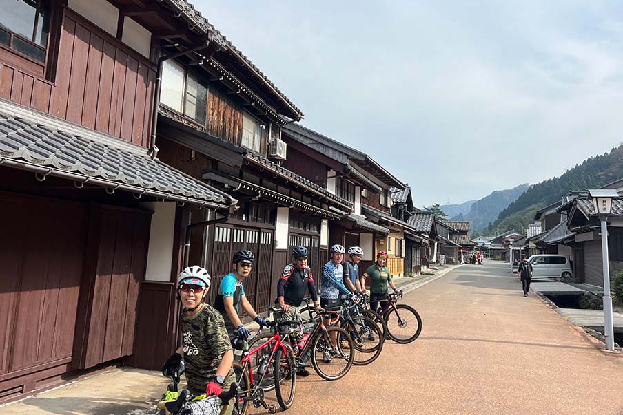 Pass through the park, and you’ll arrive at the trailhead for Wakasa Komagatake. Hike the Kumagawa trail for about an hour to reach the summit of Wagasa-Komagatake. You'll see beautiful beech forests and spectacular views of the Japan Sea and Lake Biwa. From the summit, you will walk along a ridge of beech and maple trees. Take some photos and enjoy the stunning views before returning to Kumagawa-juku on your gravel bikes.