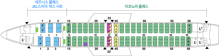 *JAL 국제선의 대표적인 좌석 배치도를 게재합니다.