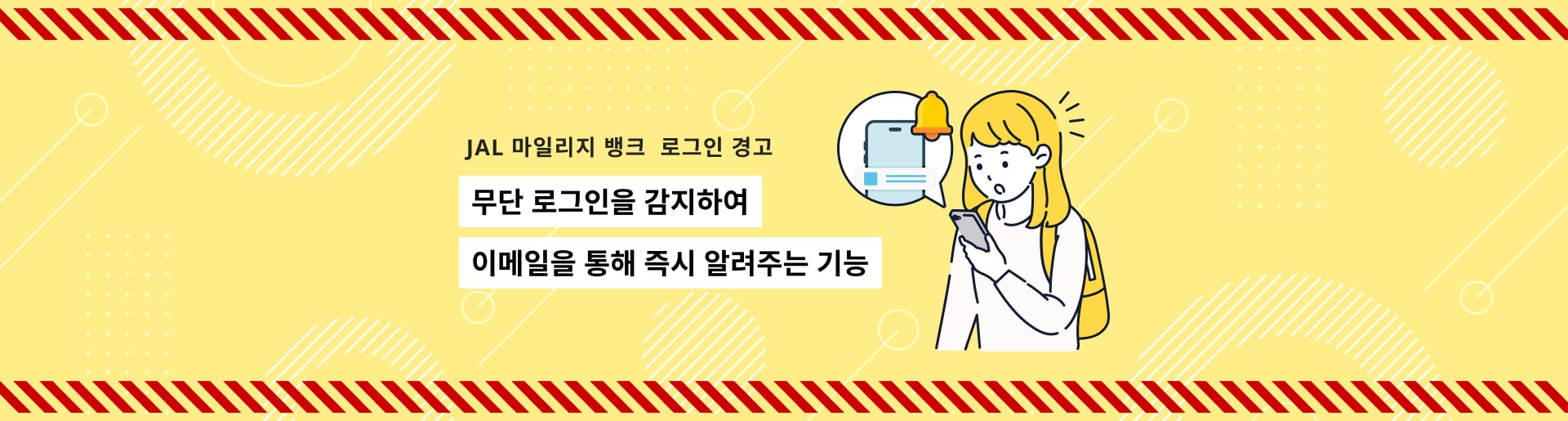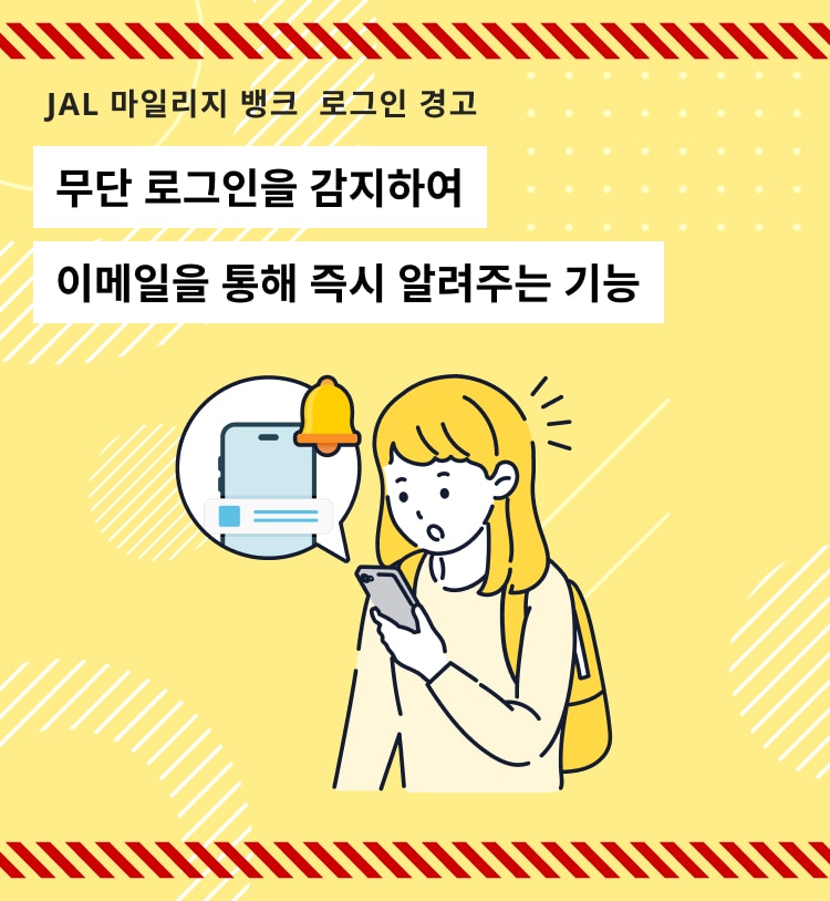 JMB 회원 정보 및 비밀번호가 도용되어 불법 로그인이 감지되면 로그인 경고를 통해 즉시 알려드립니다.
