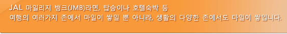 당일 구매 영수증을 지참하시고 「1층」인포메이션 데스크에서 JMB카드 또는 JAL카드를 제시하시고 마일 적립을 신청하여 주시기 바랍니다.
