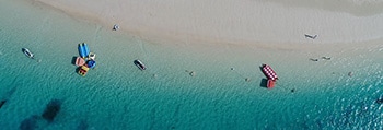 Fly to this tropical paradise with crystalline emerald-green waters.