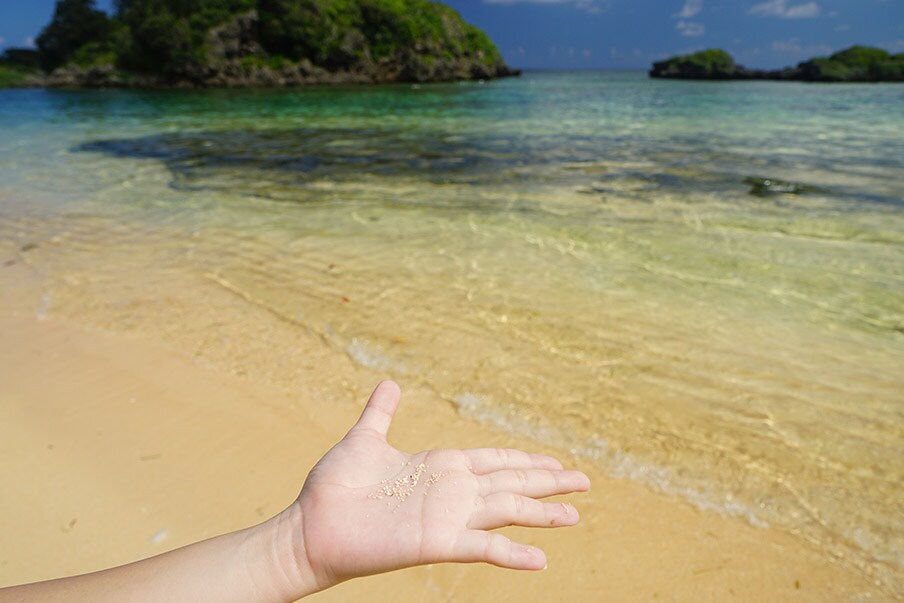 As the name suggests, Hoshizuna Beach (literally Star Sand Beach) in Iriomote Island is home to grains of sand in the shape of a star.  Typically beach sand comes from ground-down rocks, shells, and coral, but not on Hoshizuna Beach. This star-shaped sand is formed by foraminiferal shells, and are not to be missed.