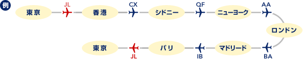 ワンワールド アライアンス加盟航空会社2社以上の組み合わせでご利用いただけます。