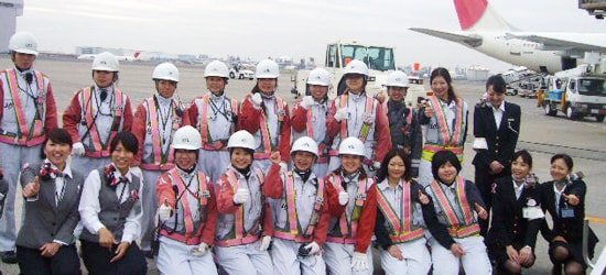 JALグループでは、客室乗務員や旅客業務スタッフのみならず、運航乗務員、整備士、運航管理スタッフ、貨物搭載スタッフ、航空機誘導スタッフ等の幅広い職種で多くの女性が活躍しています。羽田空港では、所属する6000名のうち女性が半数を占めています。