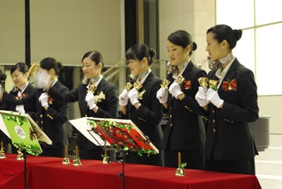 社員ボランティアによる演奏チーム「アンサンブルJ」と客室乗務員のハンドベルチーム「09JALベルスター」が演奏を行い、多くの方々から募金が集まりました。