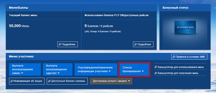 На данном веб-сайте можно забронировать международные рейсы JAL.