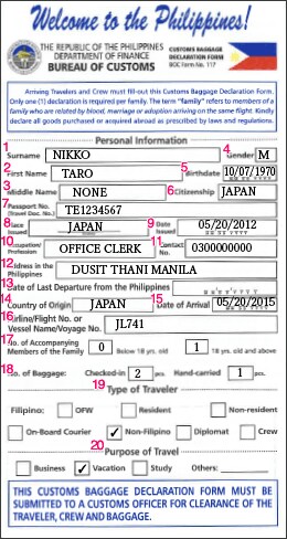 - フィリピン国内の連絡先(携帯電話やホテル電話番号など入力)