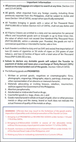- 海外で購入または取得した物品の総額(フィリピンペソ/USドル)