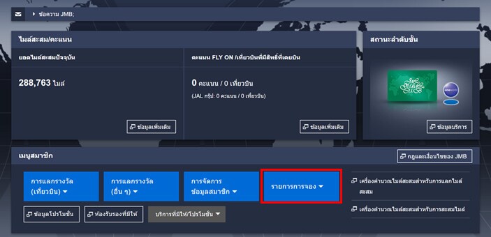 เข้าสู่ระบบด้วยหมายเลข JMB และ PIN ที่ด้านบนสุดของหน้า แล้วเลือก “รายชื่อการสำรองที่นั่ง” จากเมนูสมาชิก