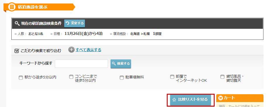 お客さまが検索されたプランを保存する「☆お気に入りに追加する」の機能は以前よりご用意がありましたが、一部ではご利用されづらい状況でした。お客さまに伝わりやすく、ご活用いただきやすくなるよう、「☆比較リストを見る」に名称を変更し、当機能のボタンが検索結果画面に常に表示されるよう改善しました。当機能では、プラン内容・金額などが最大20件まで保存でき、プランの比較検討にご利用いただけます。
