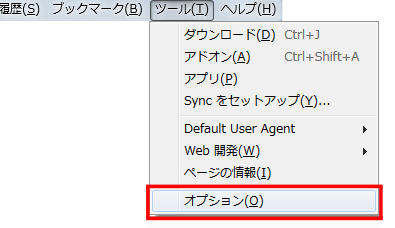 メニューバー「ツール→オプション」を選択します 。