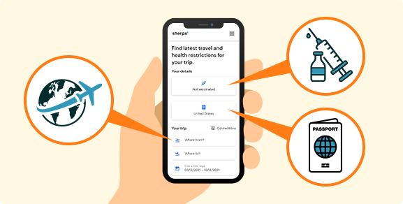 - 系統會將您重新導向至由 Sherpa 提供的外部網站,該網站彙整了入境規定。
