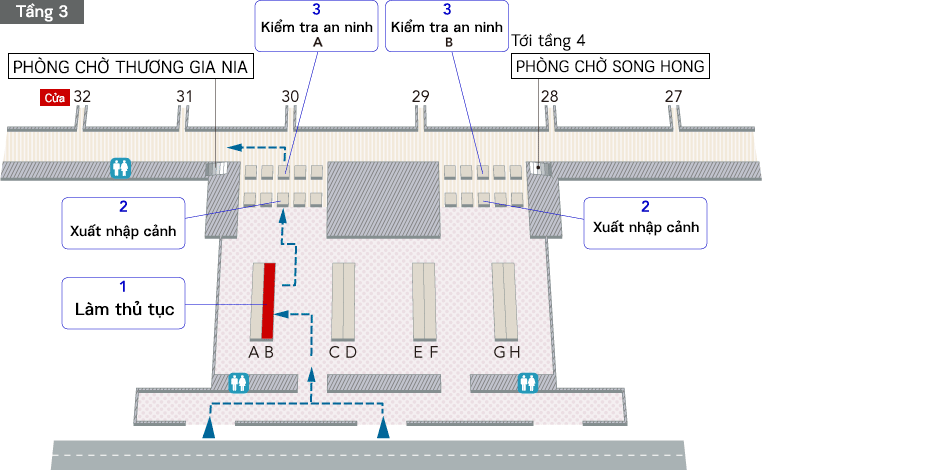 Bắt đầu lÀm thủ tục 3 giờ trước khi khởi hÀnh.