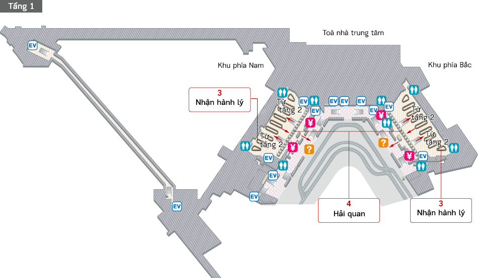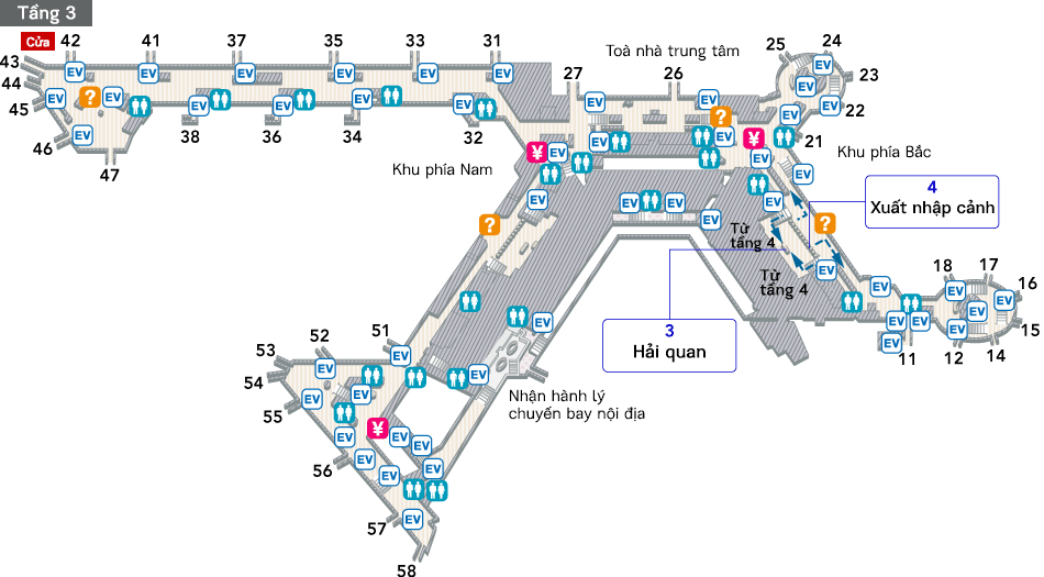 Vui lòng cho hành lý của bạn vào chụp X-quang, sau đó đến khu vực bay đi tầng t4 để xuất trình vé máy bay và hộ chiếu tại quầy của JAL dành riêng cho hạng ghế của bạn.