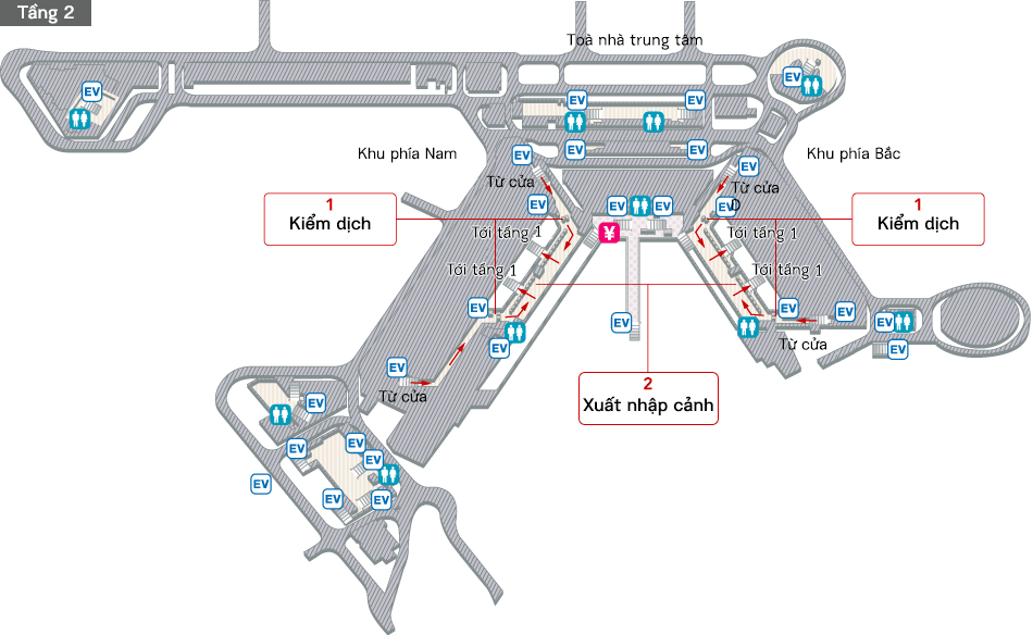 Vui lòng xuất trình phiếu xuất nhập cảnh đã hoàn thành, hộ chiếu và thẻ lên máy bay. (Công dân Nhật Bản không bắt buộc phải điền vào phiếu xuất nhập cảnh.)